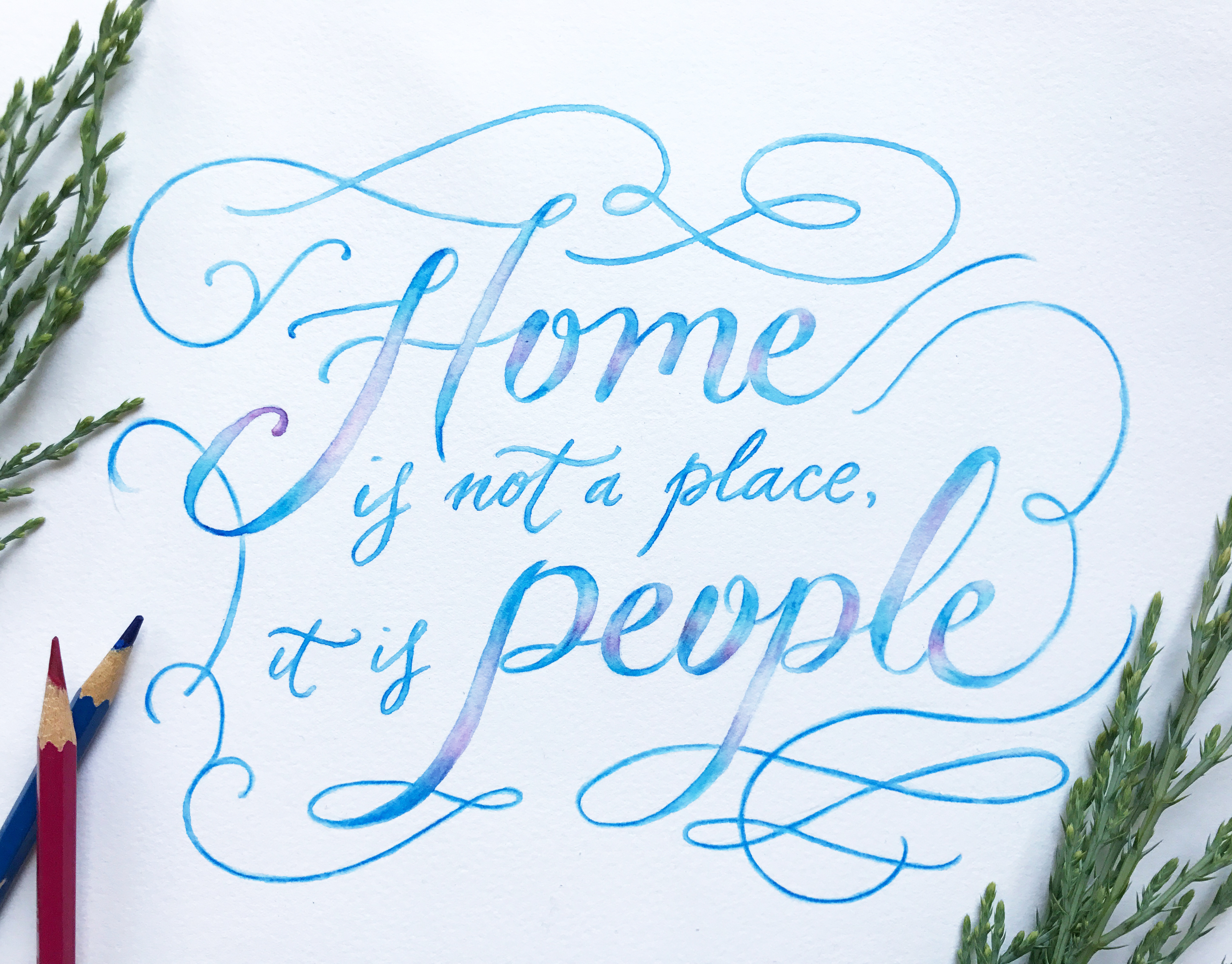 Hand lettering the idea of 'home' resonates with me most. It's about who we are with more than the place itself.